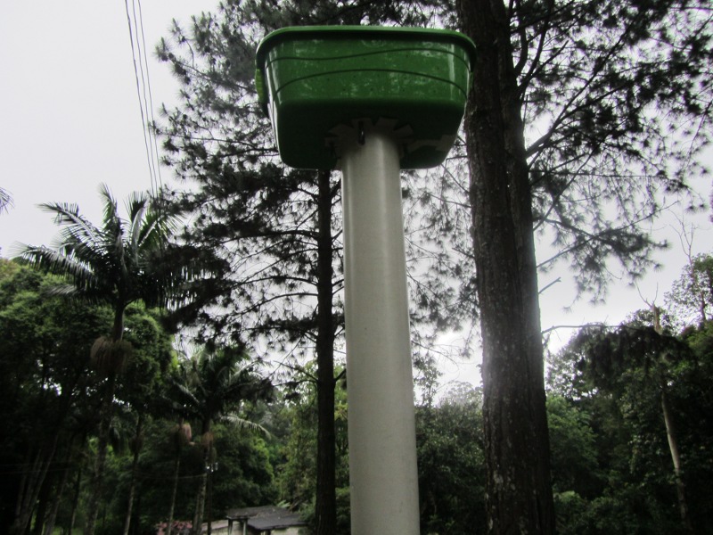 Com o passar do tempo, fomos ganhando confiança em passar 2 dias fora. Os cães comem pouco e se divertem muito entre si, e arrumamos um lugar "tri" para as Calopsitas, sob o telhado do poço artesiano.